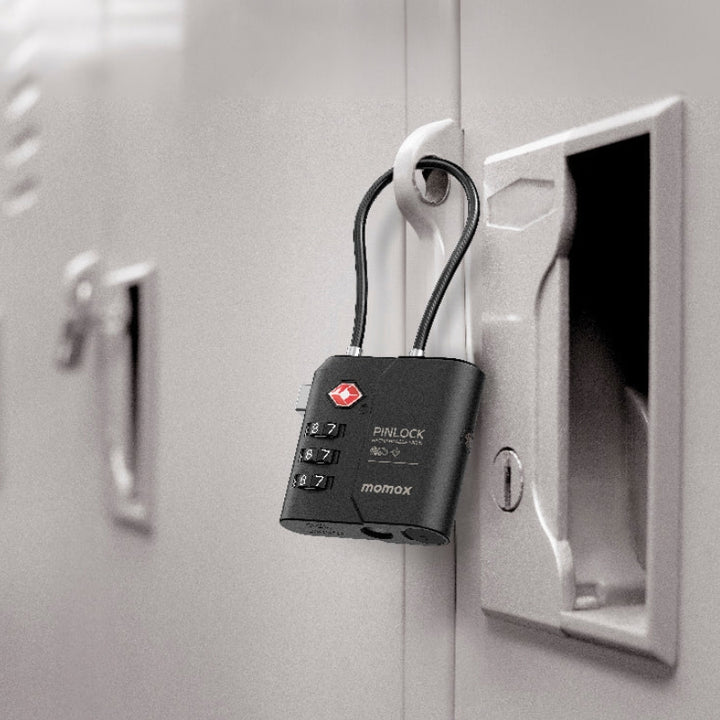 جهاز Momax PinLock الأمان أثناء السفر: قفل TSA معتمد، تتبع Find My، وشحن USB-C