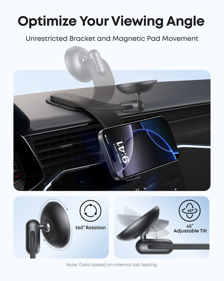 مرونة في المشاهدة: يتيح لك الرأس المغناطيسي دوران 360 درجة وإمالة 45 درجة لتحديد زاوية المشاهدة المثالية للملاحة أو المكالمات بدون استخدام اليدين.