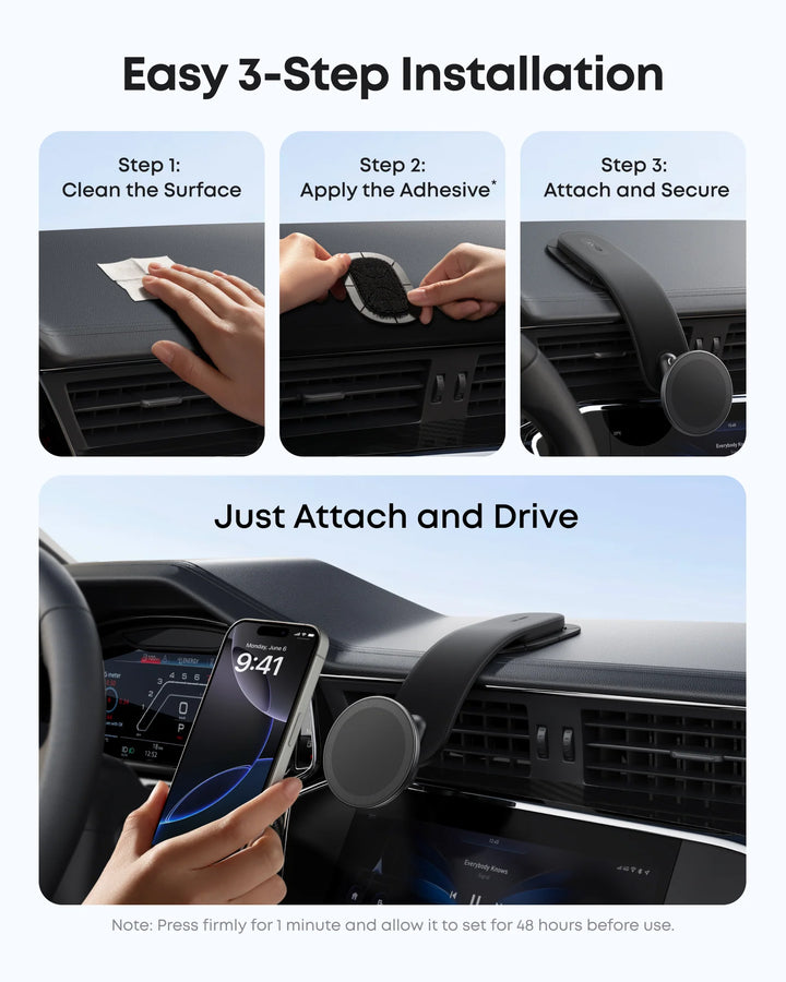 تثبيت مغناطيسي لا يهتز: يتميز بمغناطيس قوي جداً (بقوة تصل إلى 16N) يضمن تثبيت الهاتف بشكل ثابت وآمن حتى على الطرق الوعرة والمطبات.