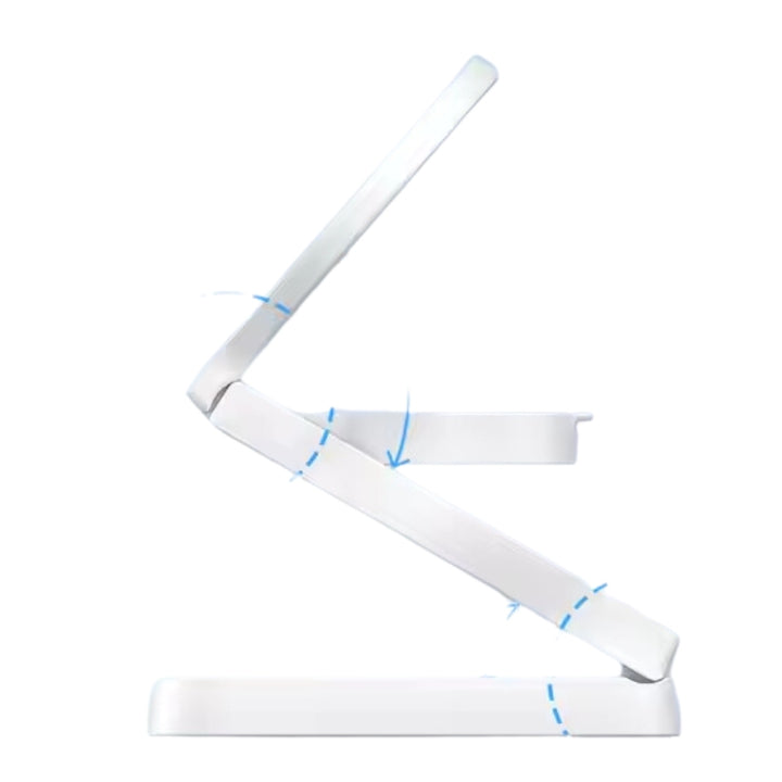 تصميم قابل للطي: يتميز بتصميم فريد قابل للطي يجعله سهل التحويل من ستاند مكتبي إلى منصة شحن مسطحة، وهو مثالي للسفر والتخزين.
