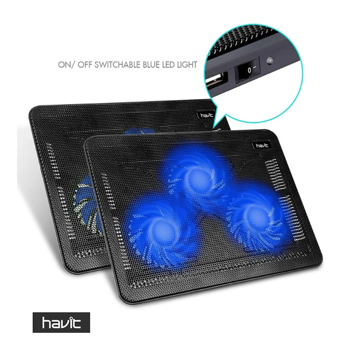 ستاند تبريد الحاسوب Havit HV-F2051 التبريد الفعال والمحمول: مروحتان ( 1200RPM )، هيكل نحيف، وزاوية قابلة للتعديل