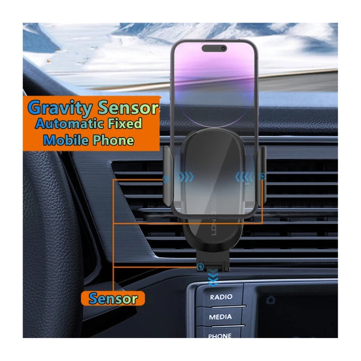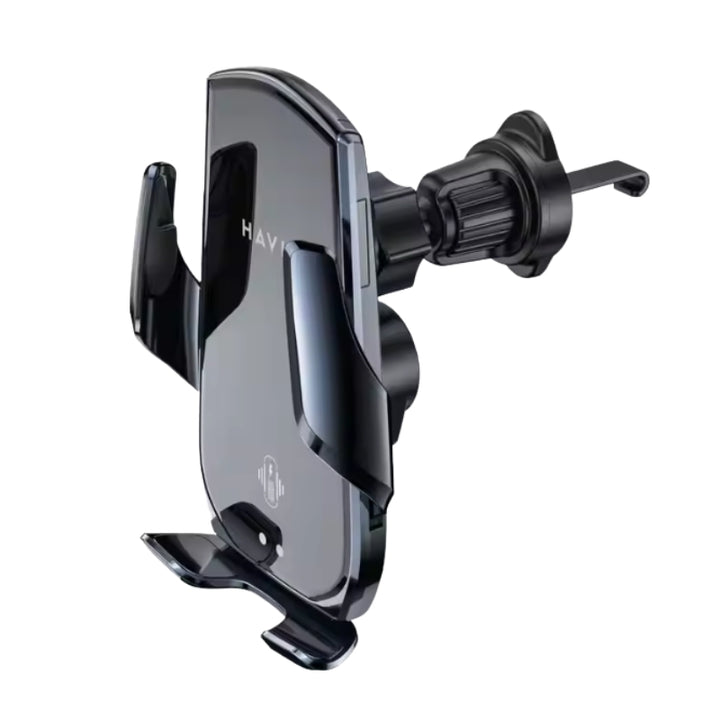 ستاند سيارة وشاحن لاسلكي Havit W3034 حامل شحن Qi بقوة 15W مع قفل وفتح آلي لفتحة التهوية
