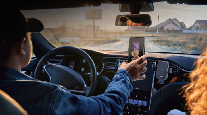 قفل آلي ذكي : يتميز بآلية قفل كهربائي ثلاثي المحاور تعمل بمجرد وضع الهاتف، وتقوم بمحاذاة الهاتف تلقائياً مع ملف الشحن اللاسلكي.