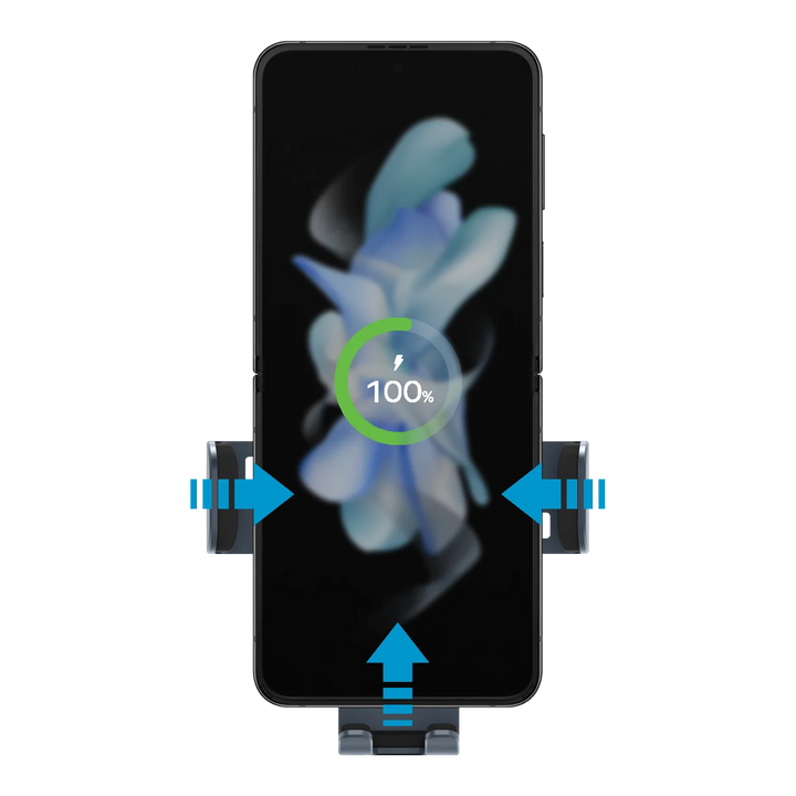 مكثف فائق مدمج : يسمح بـ فتح وإغلاق ذراعي القفل مرة واحدة بعد إيقاف تشغيل محرك السيارة، لسهولة إخراج الهاتف بأمان.