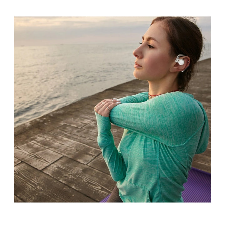 تصميم الأذن المفتوحة (): تستخدم تقنية التوصيل الهوائي لتوفر صوتاً دون سد قناة الأذن، مما يضمن راحة خالية من الضغط و وعياً كاملاً بالمحيط (ميزة أمان رياضية).