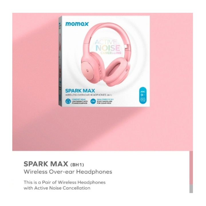 سماعات Momax SPARK MAX اللاسلكية إلغاء ضوضاء نشط (ANC)، 28H تشغيل، شريحة Qualcomm، وتصميم Over-Ear مريح