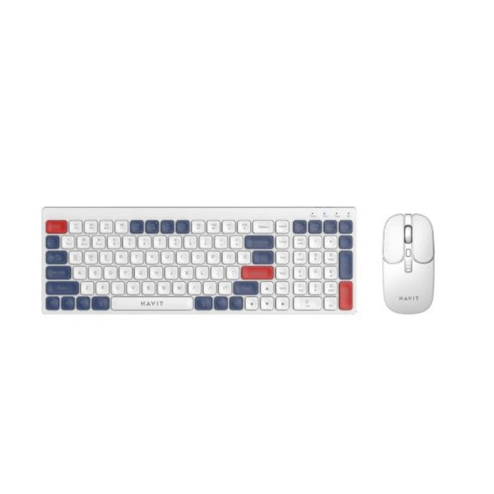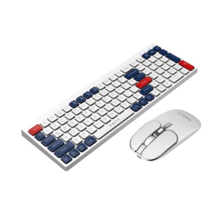 طقم كيبورد وماوس هافيت اللاسلكي (Havit) - الموديل KB830WB شحن مدمج واتصال مزدوج: حزمة مكتبية بيضاء وأنيقة