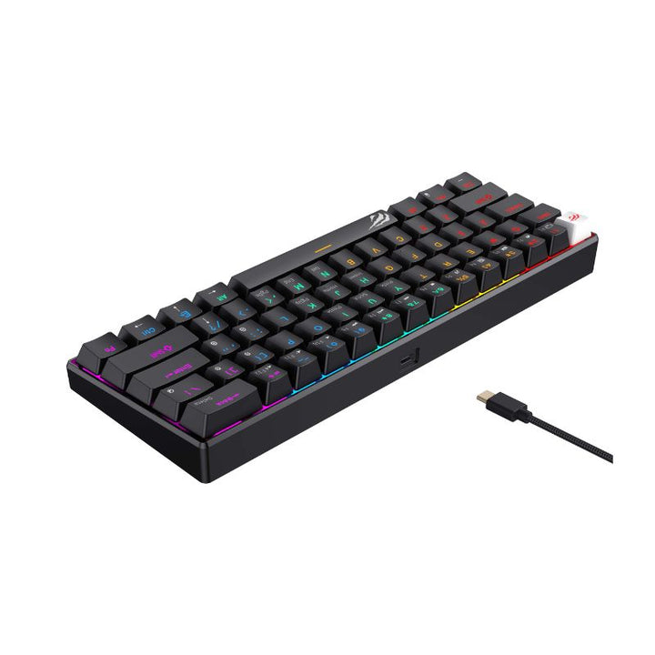 • إضاءة RGB جذابة: يضم إضاءة RGB LED ملونة (Rainbow Backlit) مع تأثيرات ضوئية متعددة، قابلة للتخصيص مباشرةً من الكيبورد دون الحاجة لبرنامج (Driver-Free).