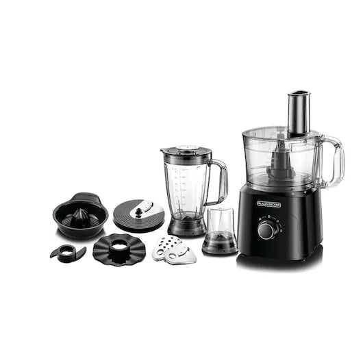 وظائف متعددة: يأتي مع مجموعة من الملحقات، بما في ذلك شفرة التقطيع، قرص البشر، وأداة العجن، مما يجعله جهازاً شاملاً لكل احتياجاتك في المطبخ.