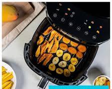 تقنية القلي بالهواء: تستخدم تقنية تدوير الهواء الساخن بدرجة 360 درجة لطهي الطعام بشكل متساوٍ ومقرمش، مع تقليل الدهون بشكل كبير.
