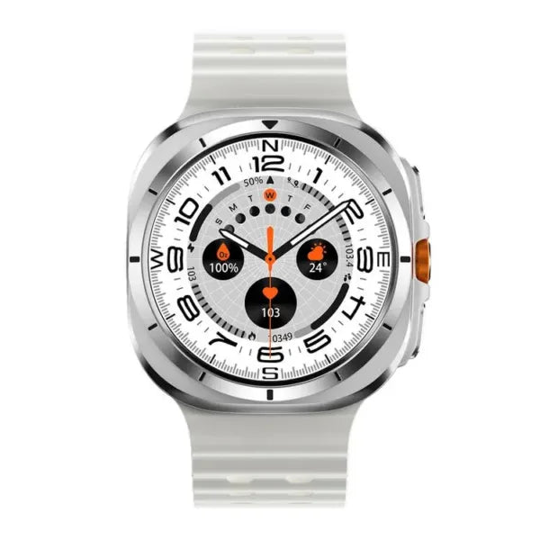 تصميم فاخر: هيكل الساعة مصنوع من سبائك الزنك بلون فضي، مع سوار أبيض أنيق من مادة Ocean Band، مما يمنحها مظهرًا عصريًا.